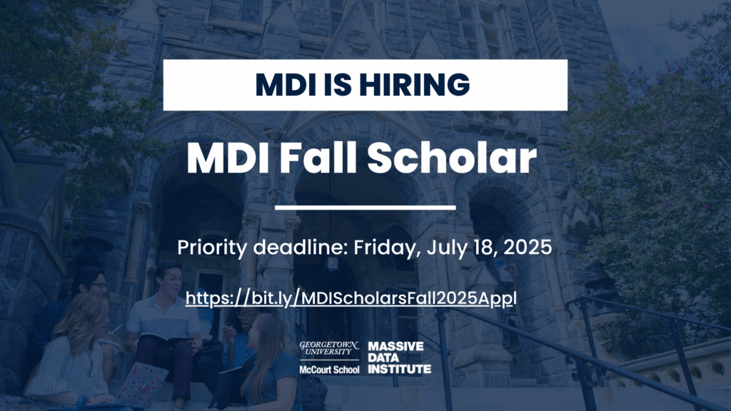 MDI is excited to announce a new position: Media and Journalism Student Assistant. Apply here for full consideration; please apply by August 1st The Massive Data Institute (MDI)…