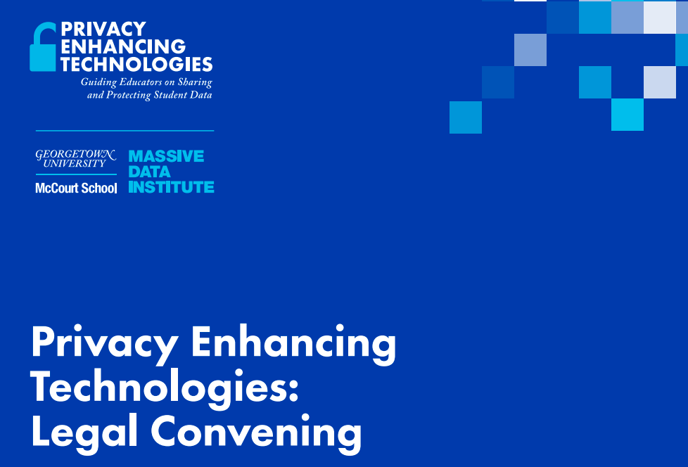 Georgetown University’s Massive Data Institute, The Data Foundation, and the Future of Privacy Forum hosted a Legal Convening focused on the topic of Privacy Enhancing Technologies (PETs) and their intersection with legal frameworks in the sharing of educational data. The purpose of the hybrid in-person and virtual workshop was to delineate challenges in the PET/legal space, identifying key questions and areas where practitioners are encountering obstacles and work to find solutions to common roadblocks. See Ongoing Q&As and Presentation slides.