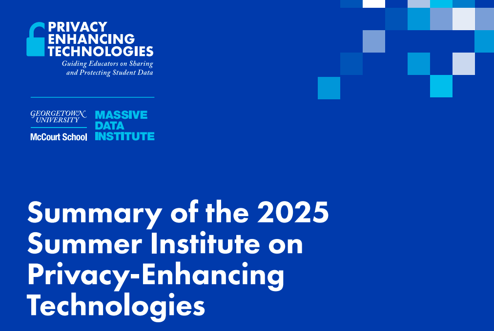Convened by Georgetown University’s Massive Data Institute (MDI), the 2025 Summer Institute brought together researchers, policymakers, technologists, legal professionals, and data stewards for three days of discussion on privacy-enhancing technologies (PETs), responsible data integration, and equitable infrastructure for public data use. Hosted at the McCourt School of Public Policy in Washington, DC, on June 9–11, 2025, the Summer Institute featured presentations, panel discussions, and product demonstrations from federal agencies, academic laboratories, software developers, and cross-sector partnerships.